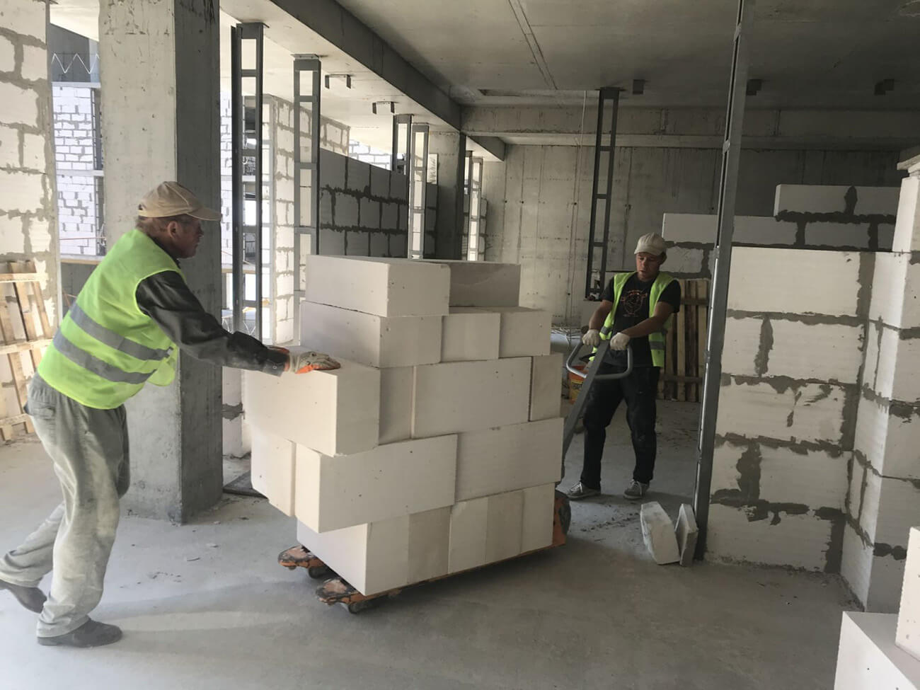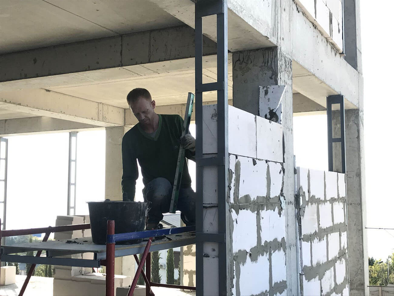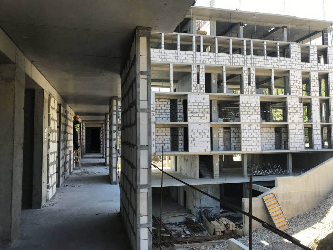 - кладка стен и монтаж сетей внутреннего водопровода и канализации в блоках 1 и 2