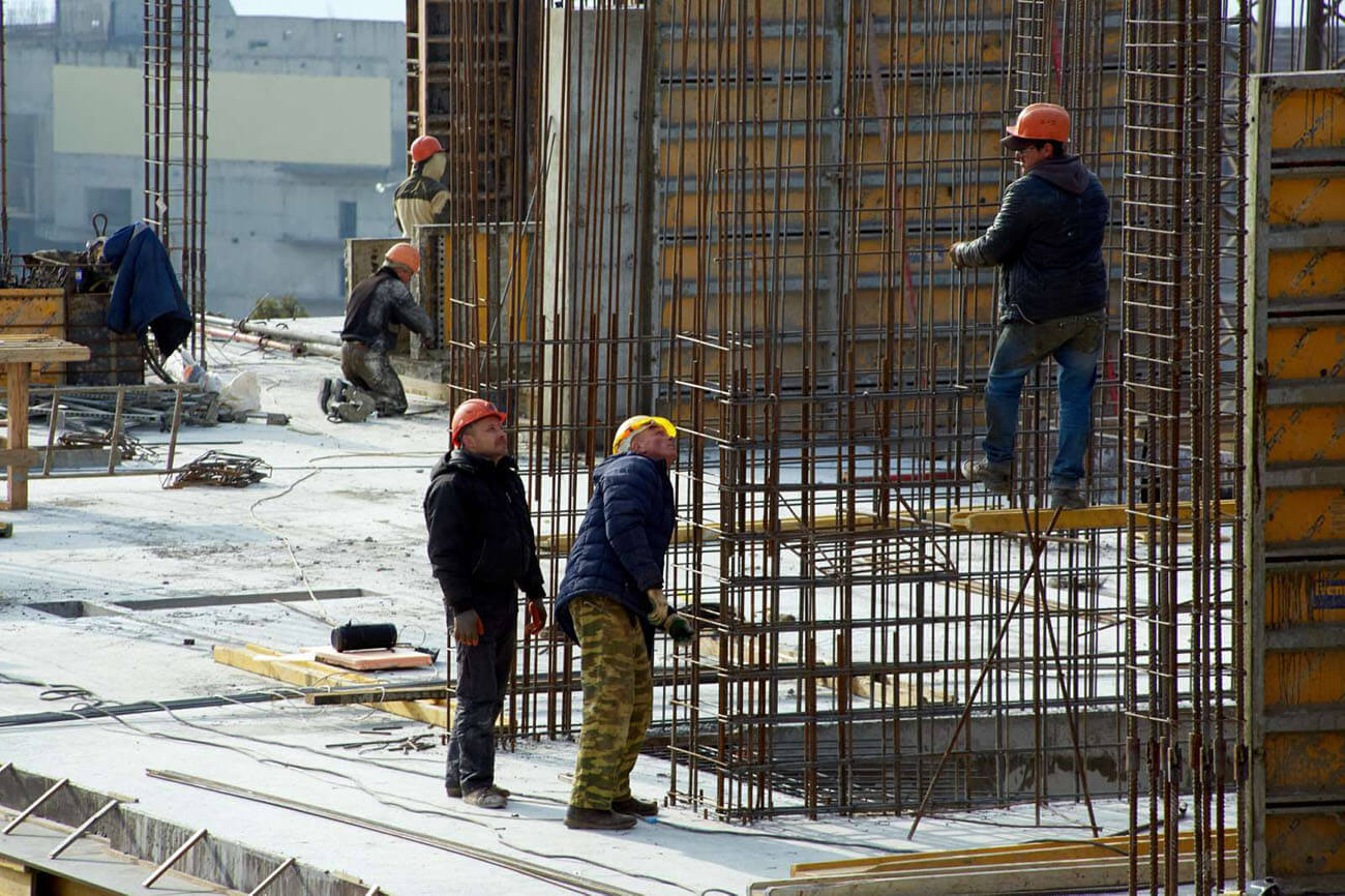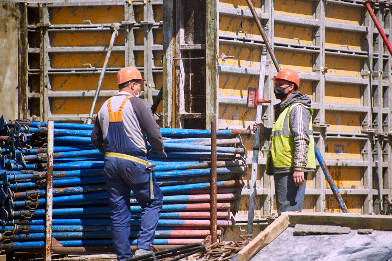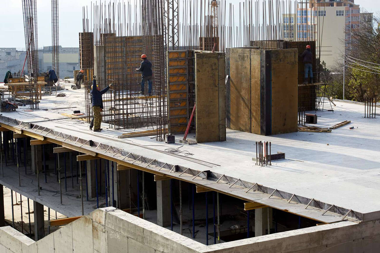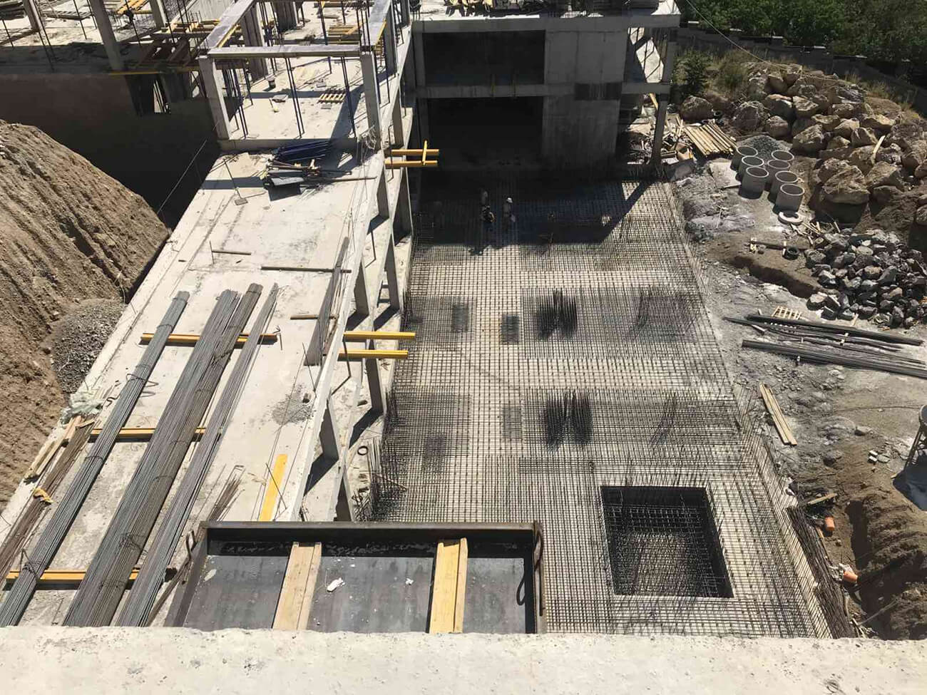 забетонированы перекрытие 4 этажа, колонны и стены 5 этажа, ставится опалубка и армируется перекрытие 5 этажа;