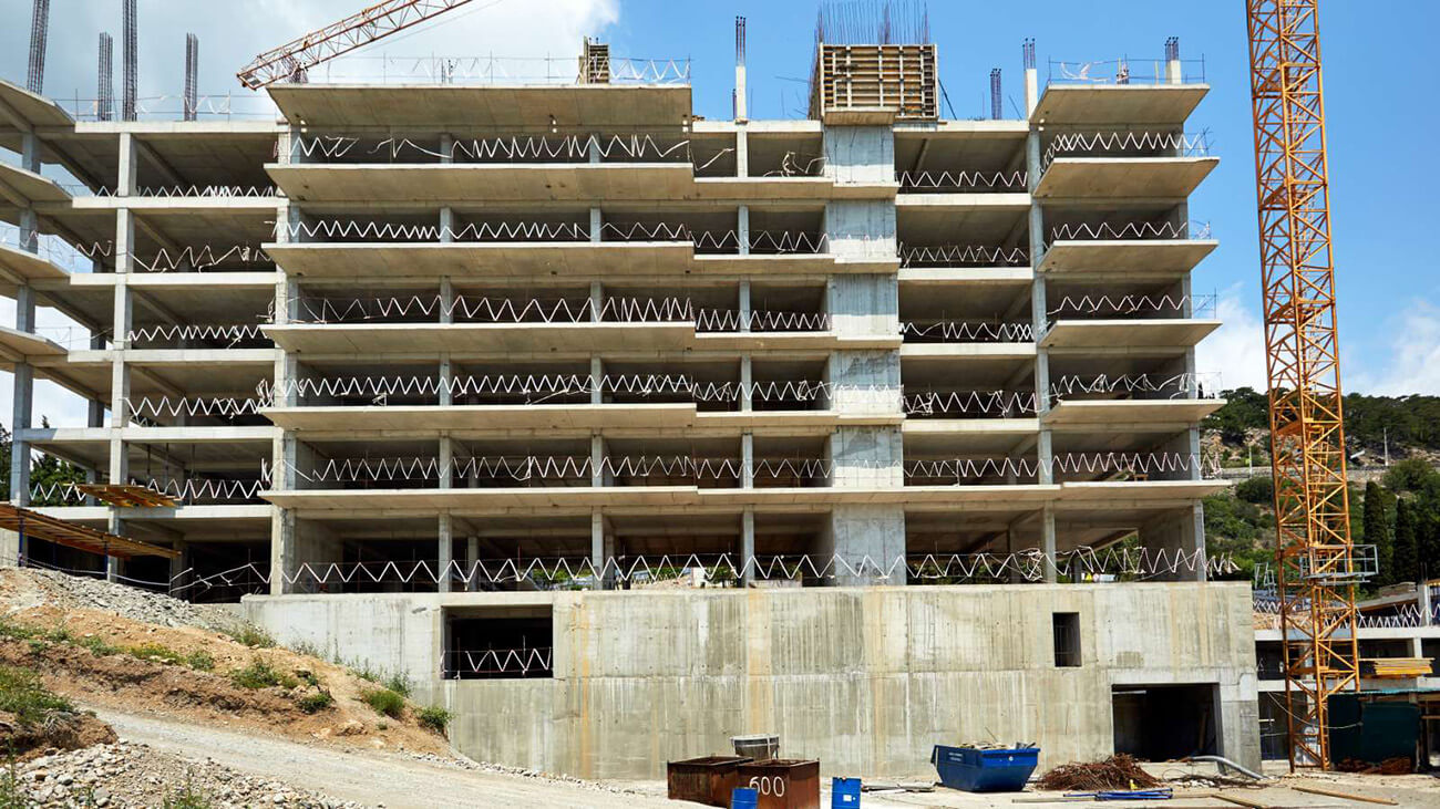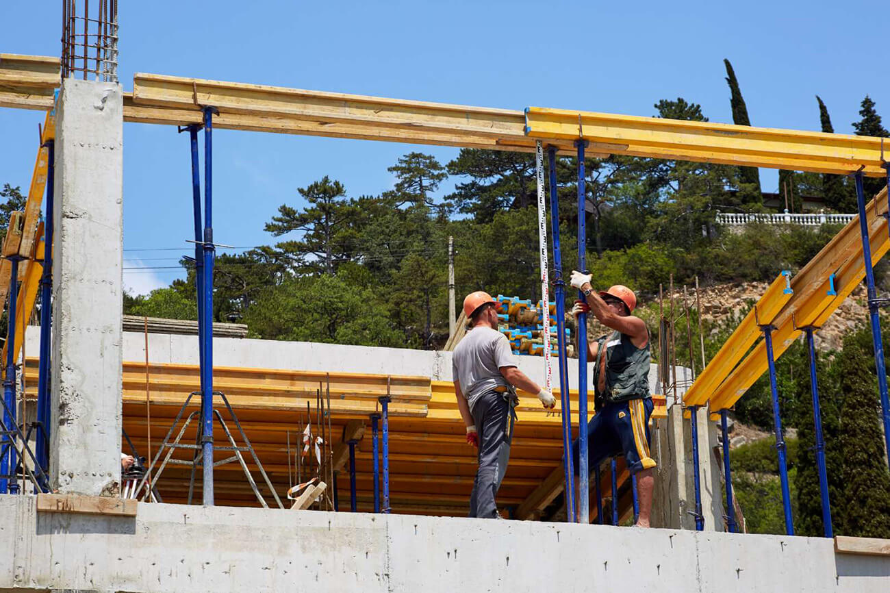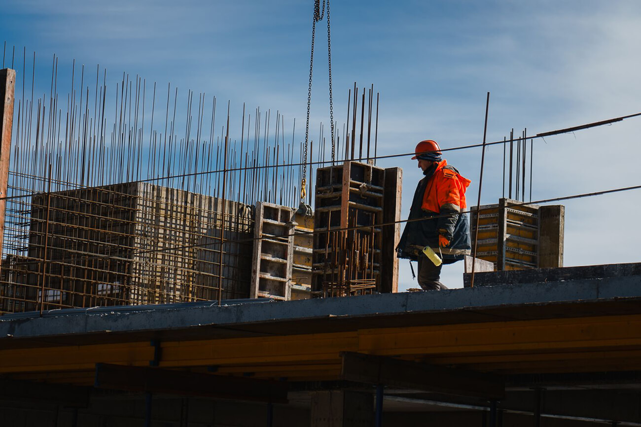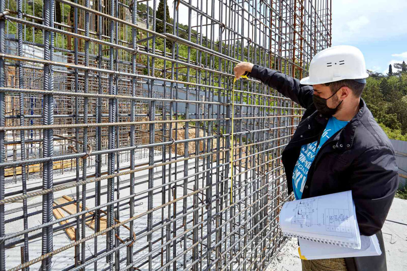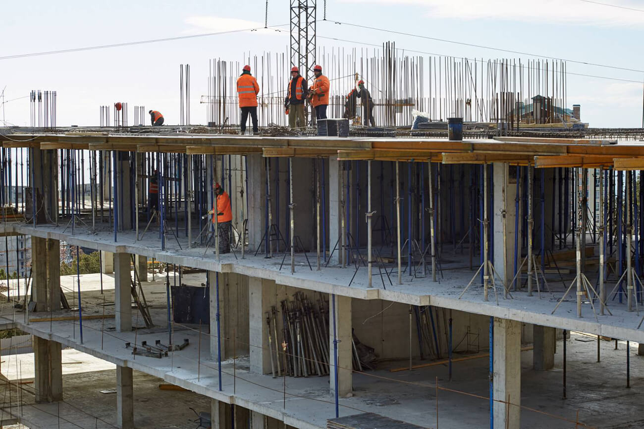 забетонированы перекрытие 4 этажа, колонны и стены 5 этажа, ставится опалубка и армируется перекрытие 5 этажа;