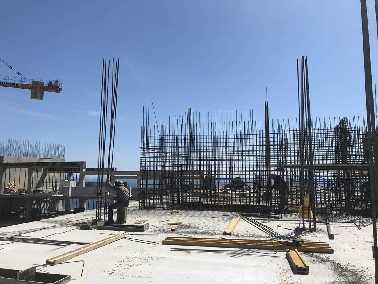 Завершено бетонирование стен и колонн 6-го этажа, выполнен монтаж опалубки, армирование и бетонирование перекрытия 6-го этажа.
