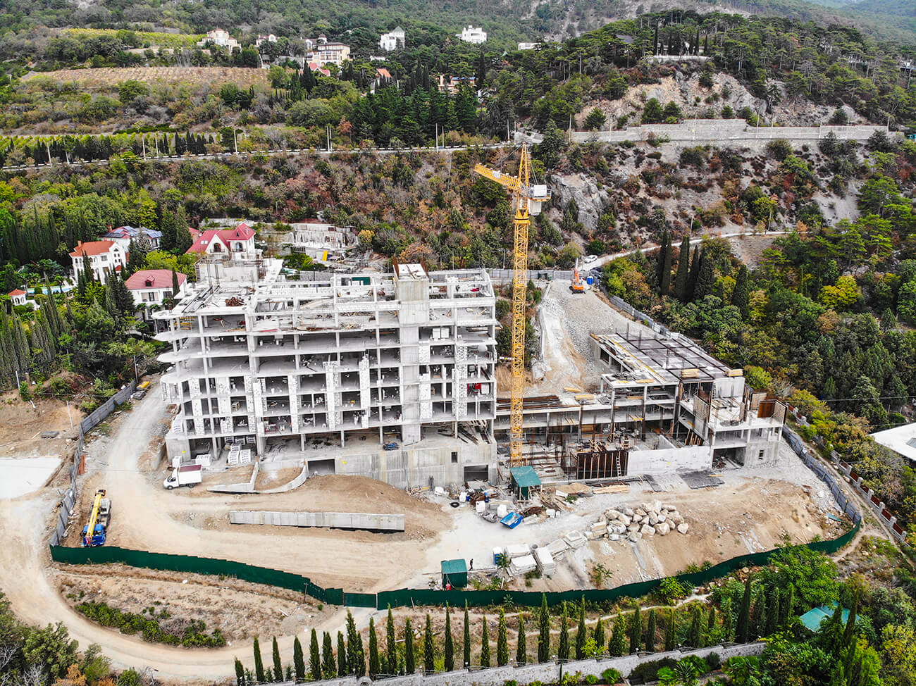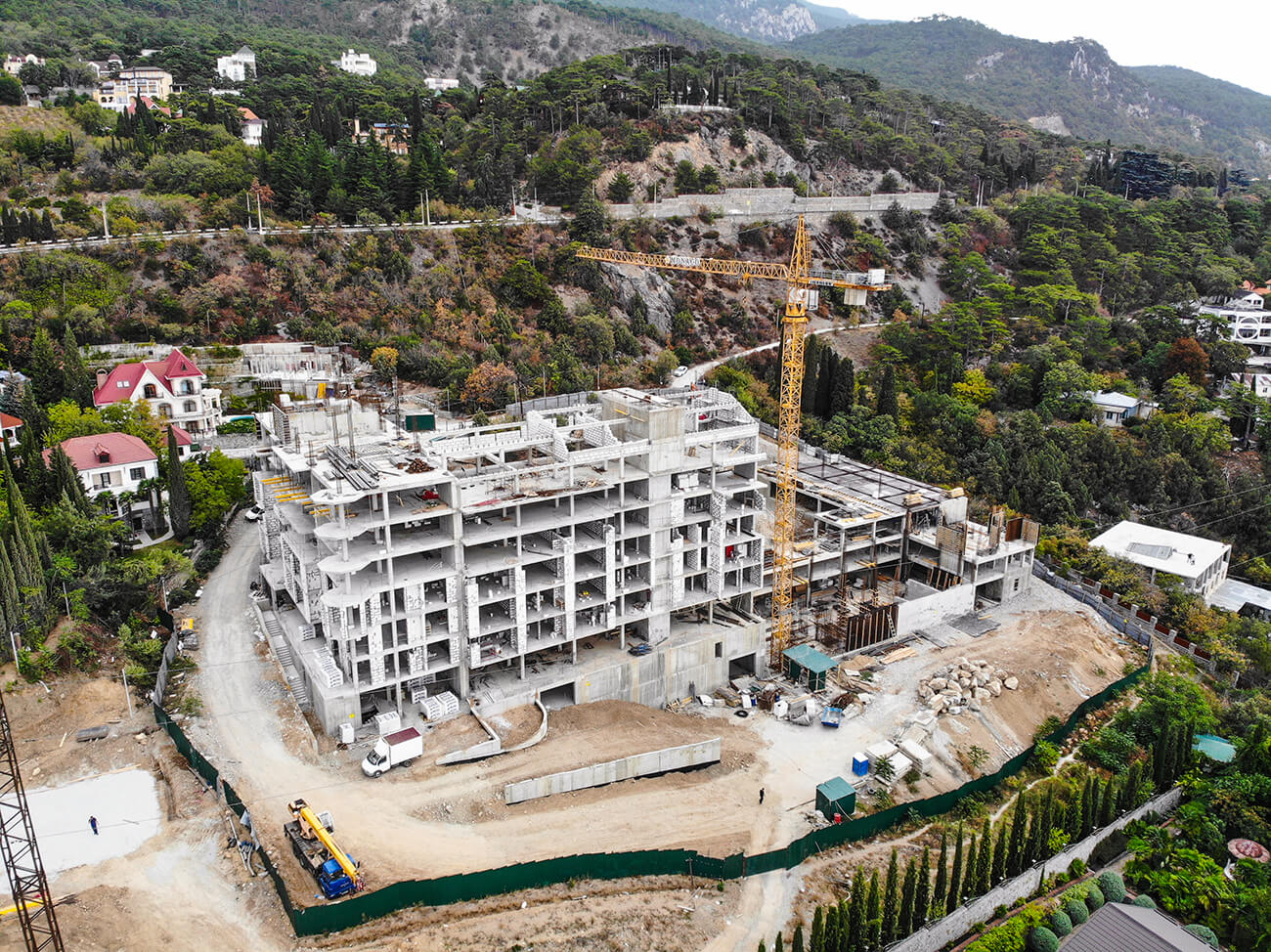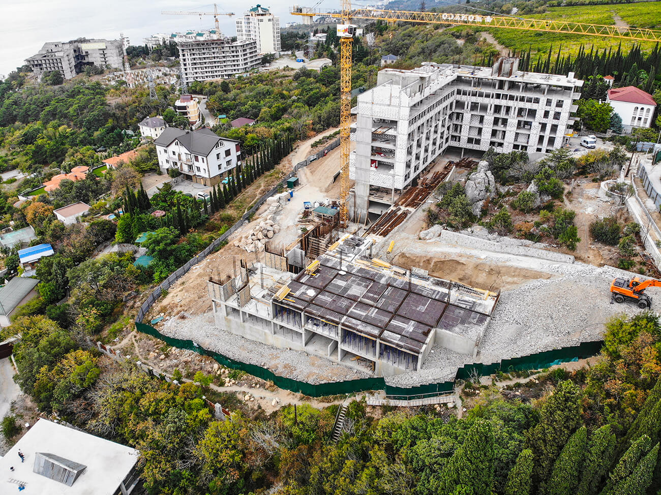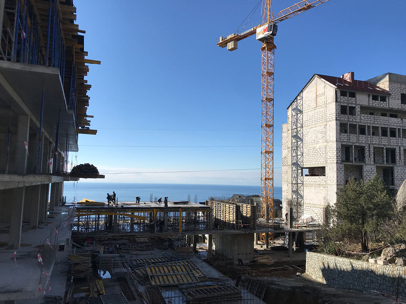 С октября запрет властей на производство строительных работ на Южном берегу Крыма во время курортного сезона сняли и на площадке жилого комплекса работа закипела с новой силой!