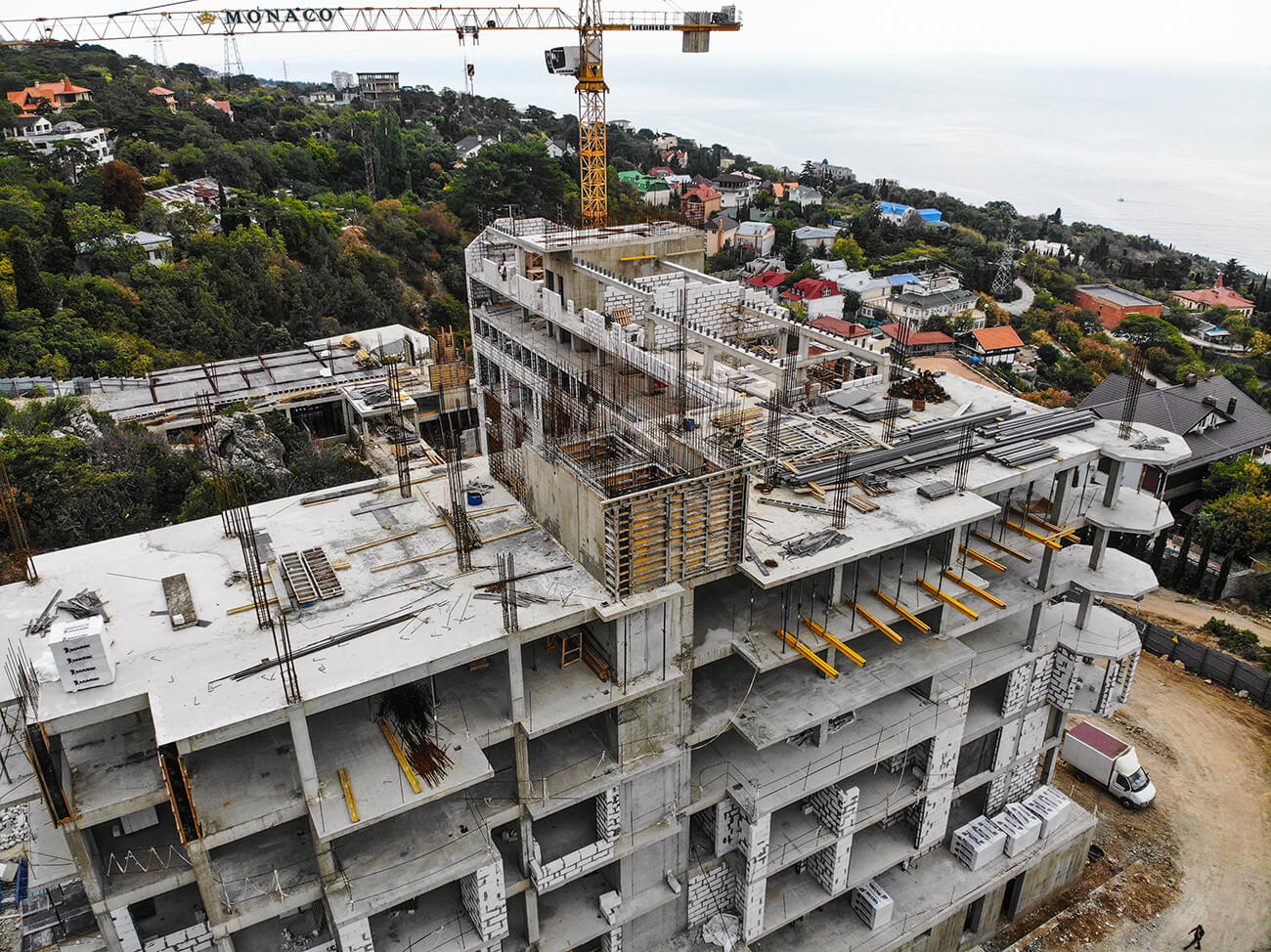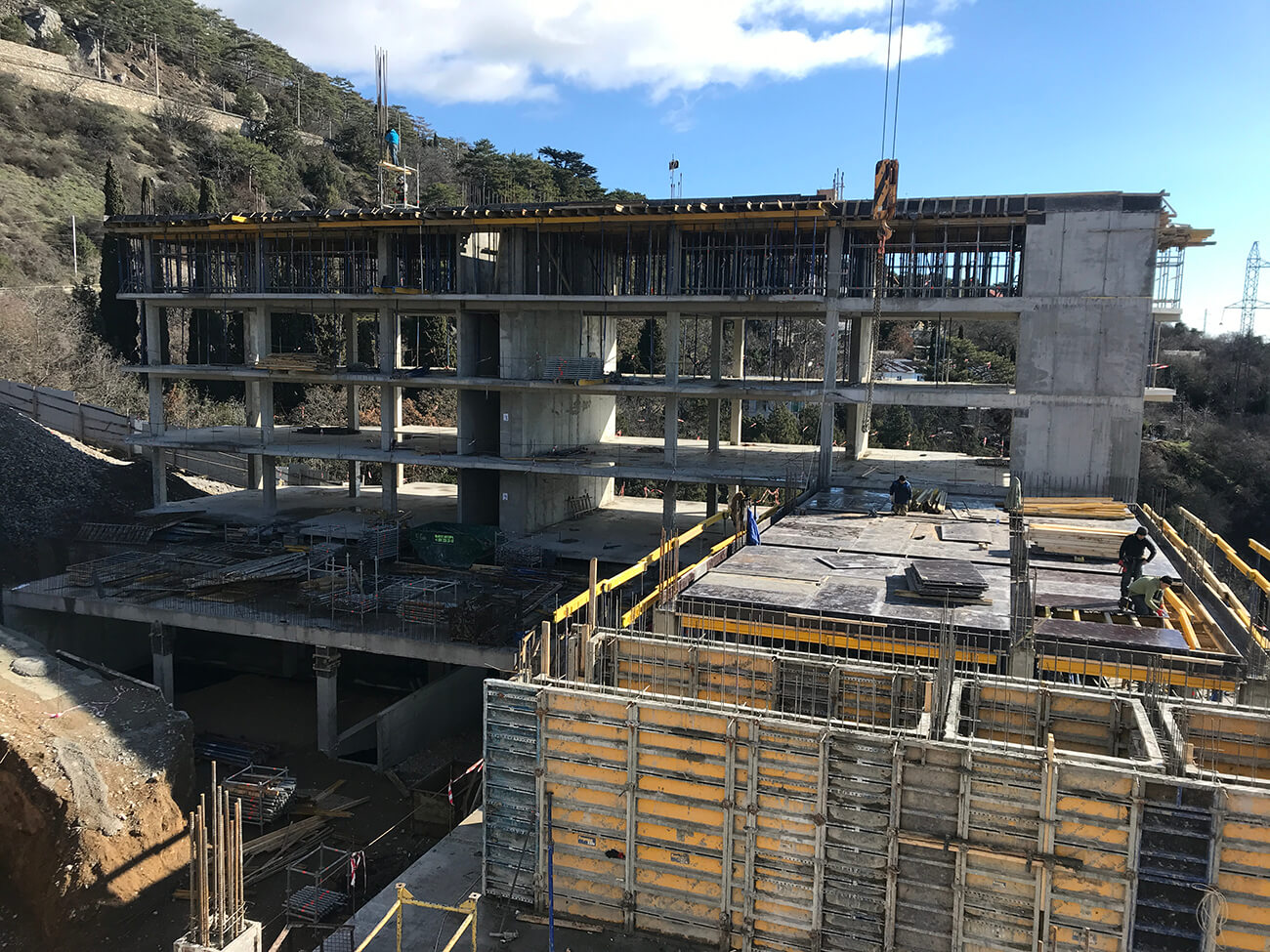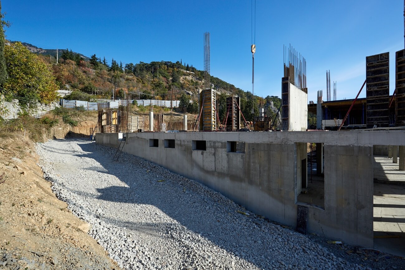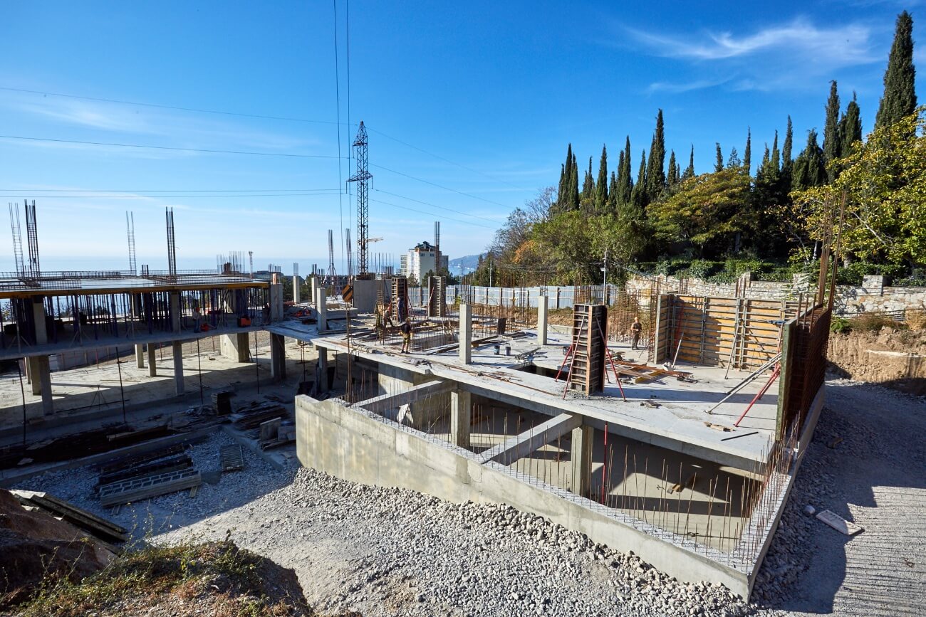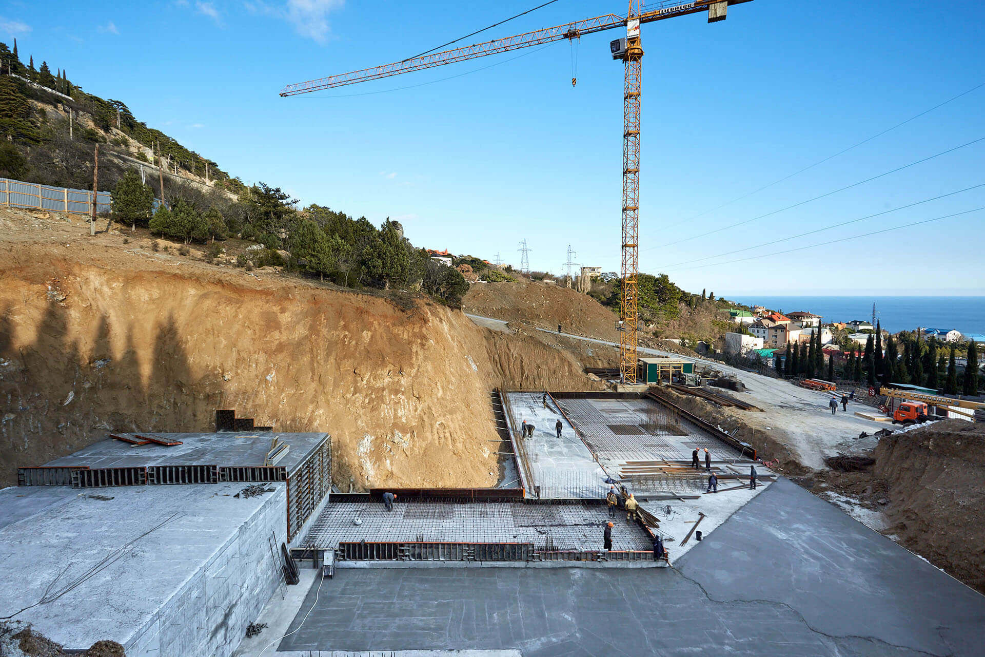 С октября запрет властей на производство строительных работ на Южном берегу Крыма во время курортного сезона сняли и на площадке жилого комплекса работа закипела с новой силой!