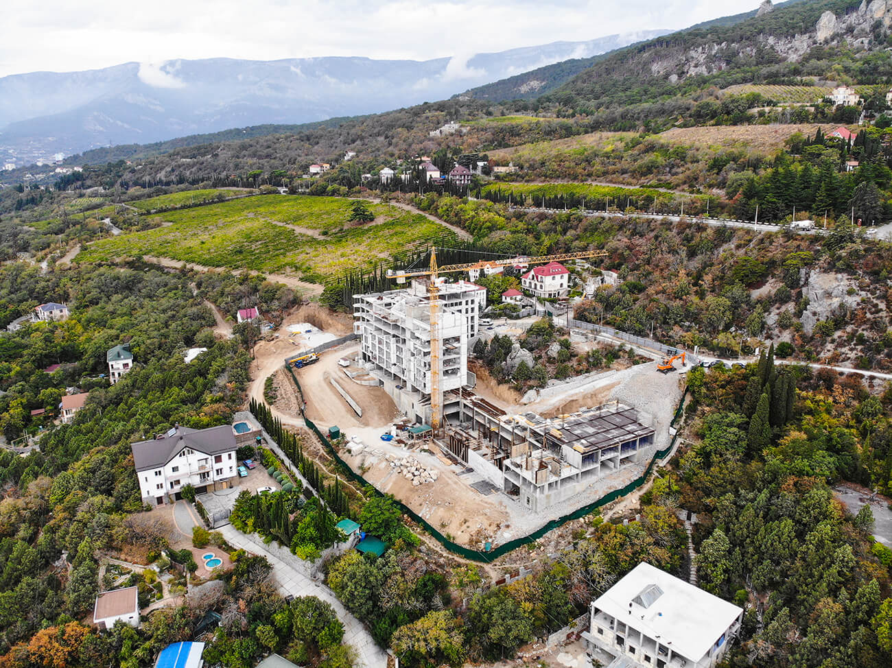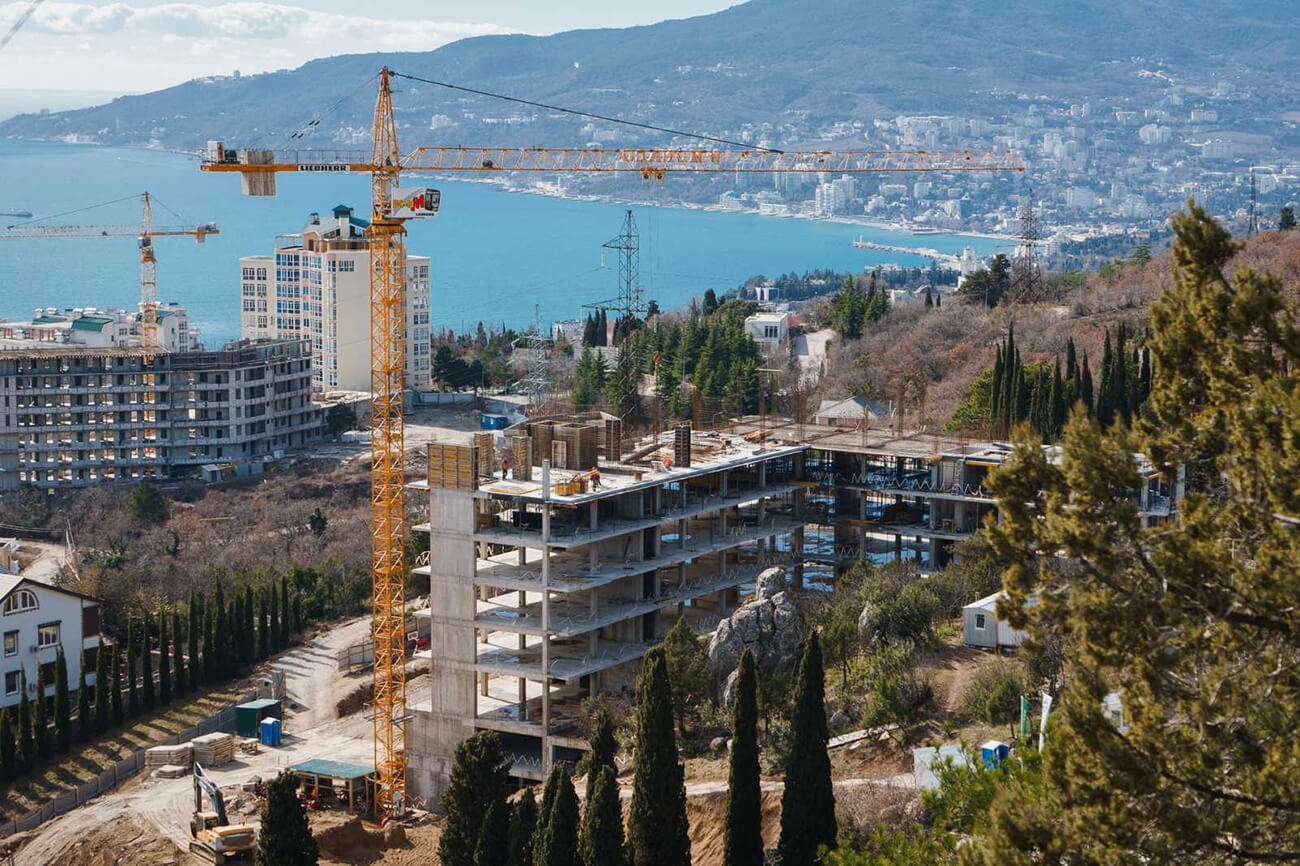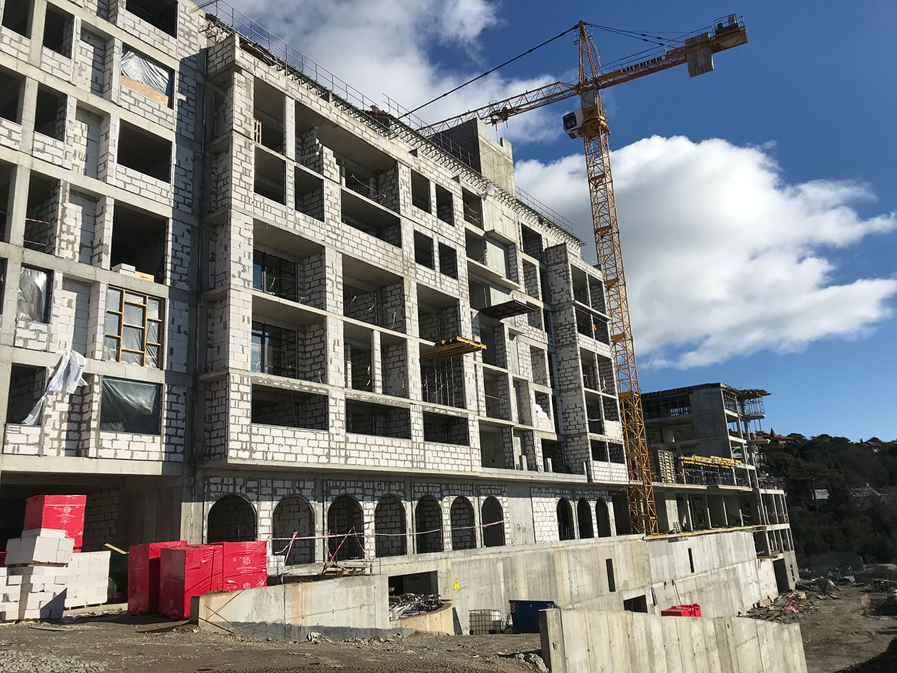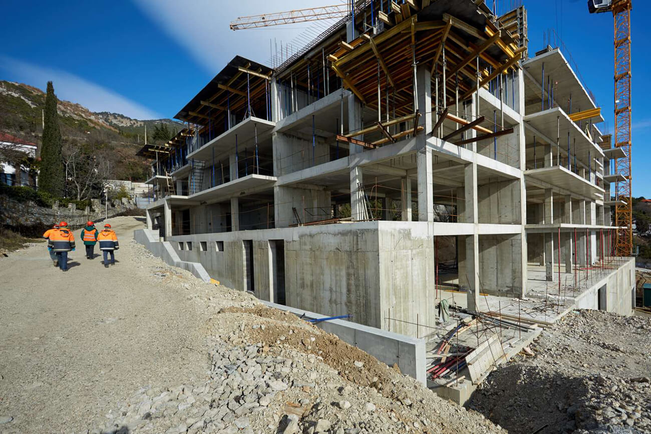 С октября запрет властей на производство строительных работ на Южном берегу Крыма во время курортного сезона сняли и на площадке жилого комплекса работа закипела с новой силой!