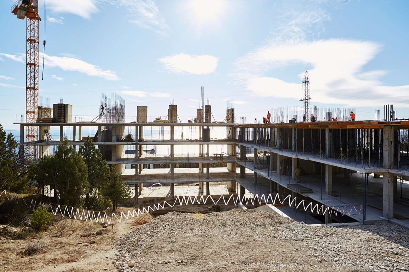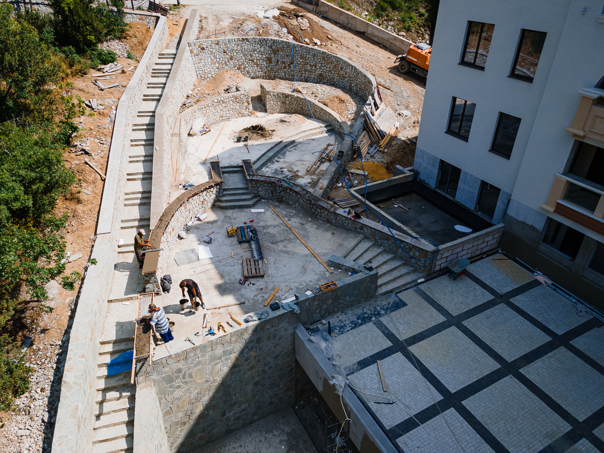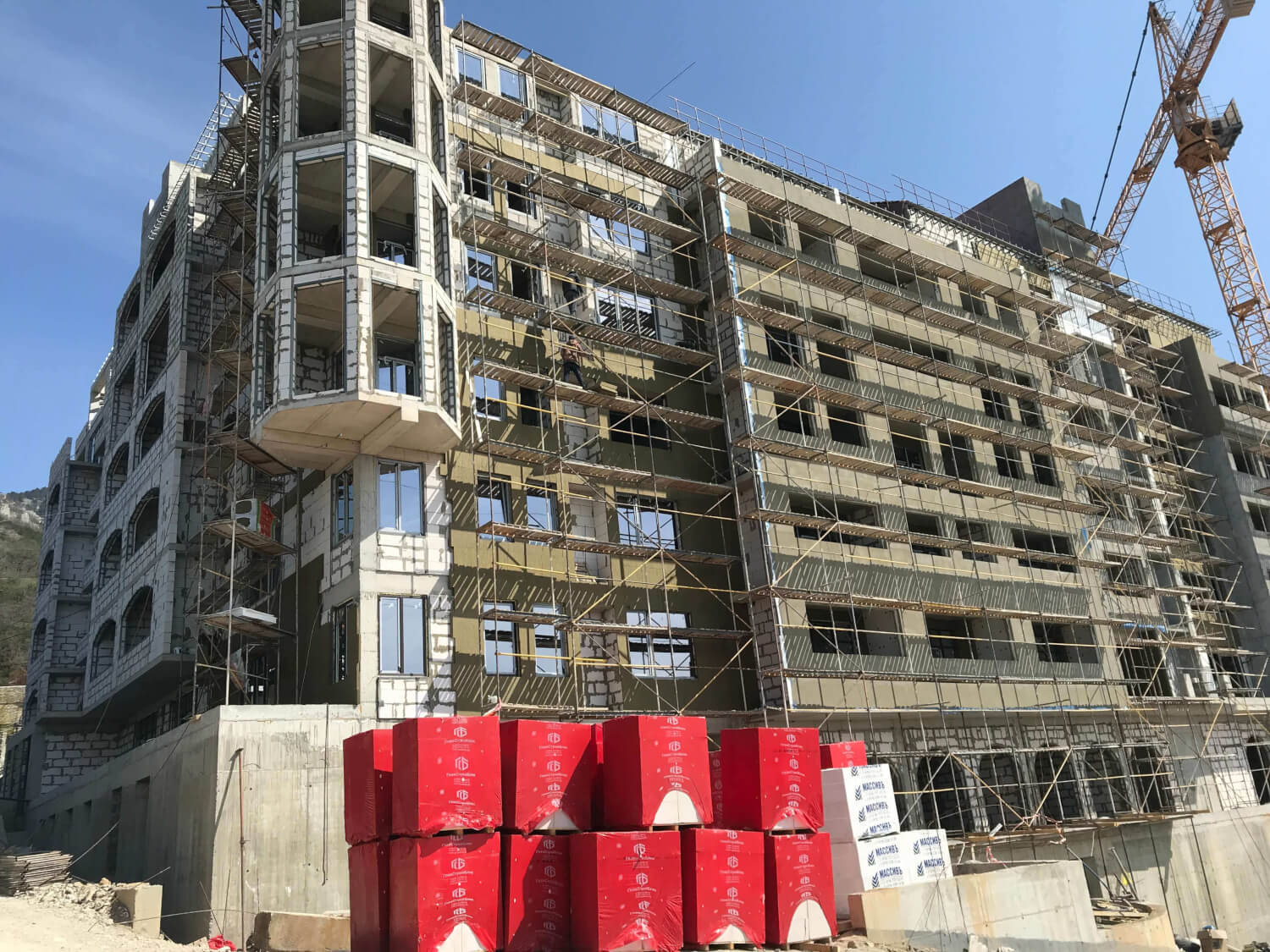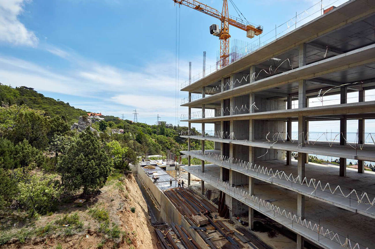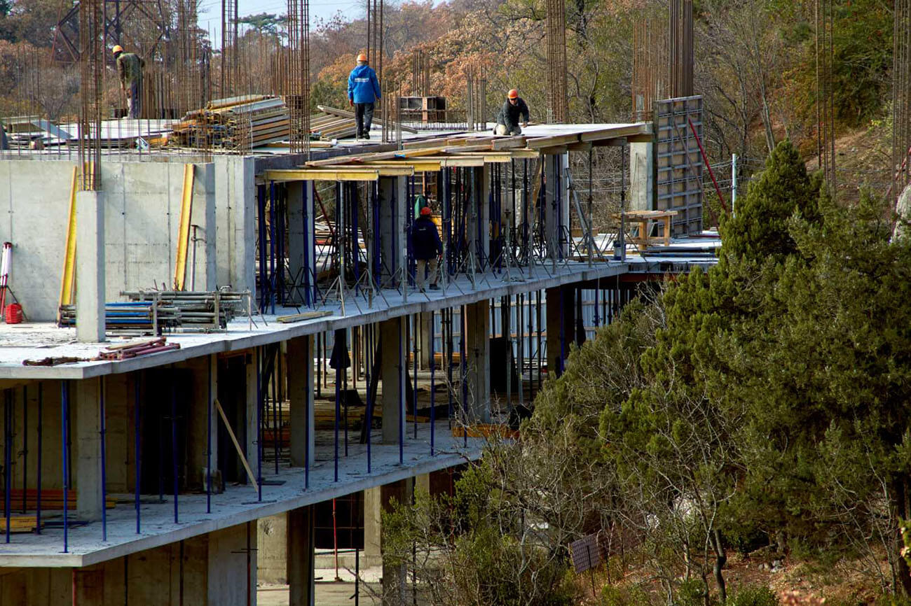 С октября запрет властей на производство строительных работ на Южном берегу Крыма во время курортного сезона сняли и на площадке жилого комплекса работа закипела с новой силой!