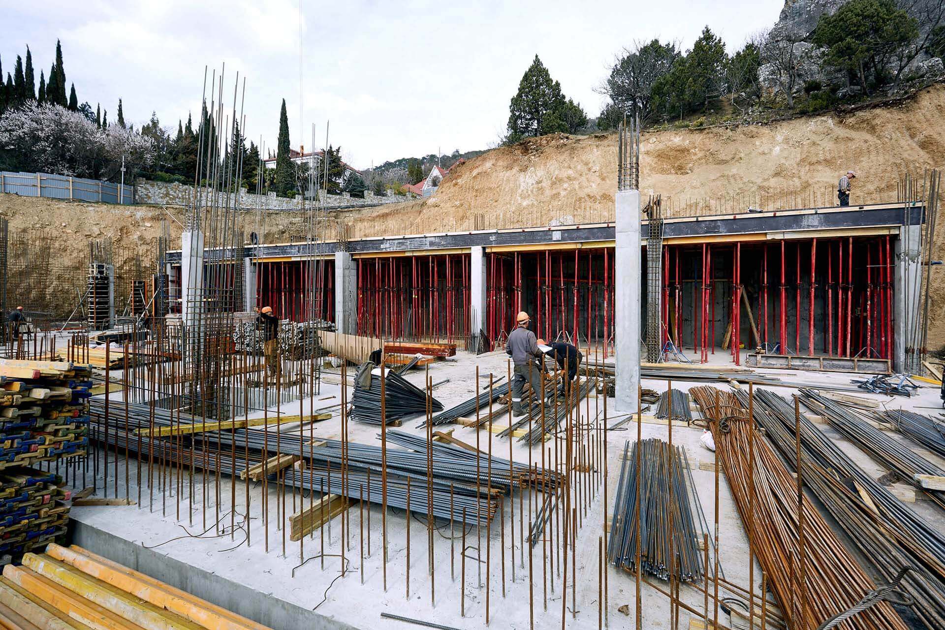 Строительство жилого комплекса выполнено на 12%. За это время в конструкции уложено более 500 м3 бетона, для которых было использовано 100 тонн арматуры.