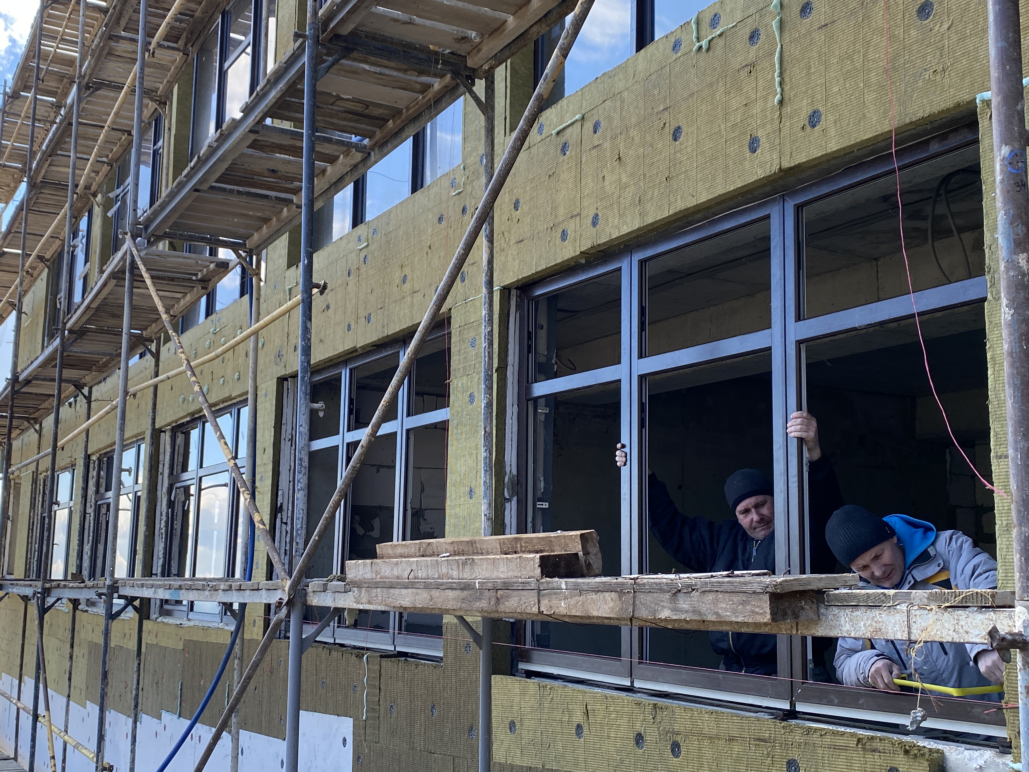Наши строители забрались повыше, ведь работы ведутся уже на уровне 8-го этажа!