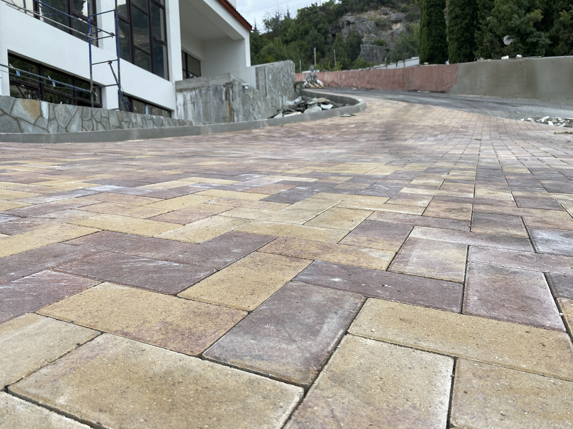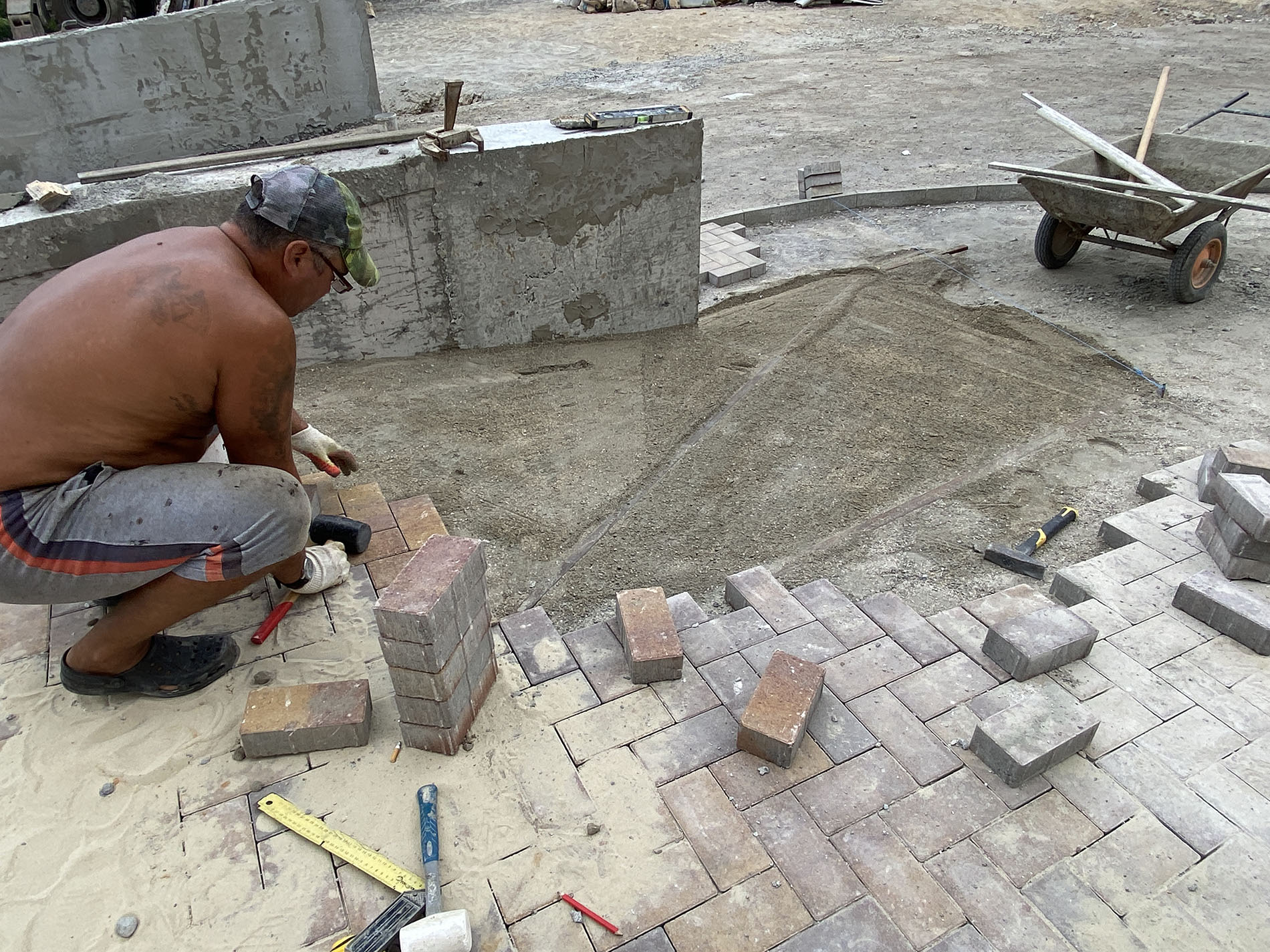 Продолжаем работы по благоустройству внутреннего двора, бетонированию лифтовых шахт и устройству въезда в двухуровневый подземный паркинг комплекса.