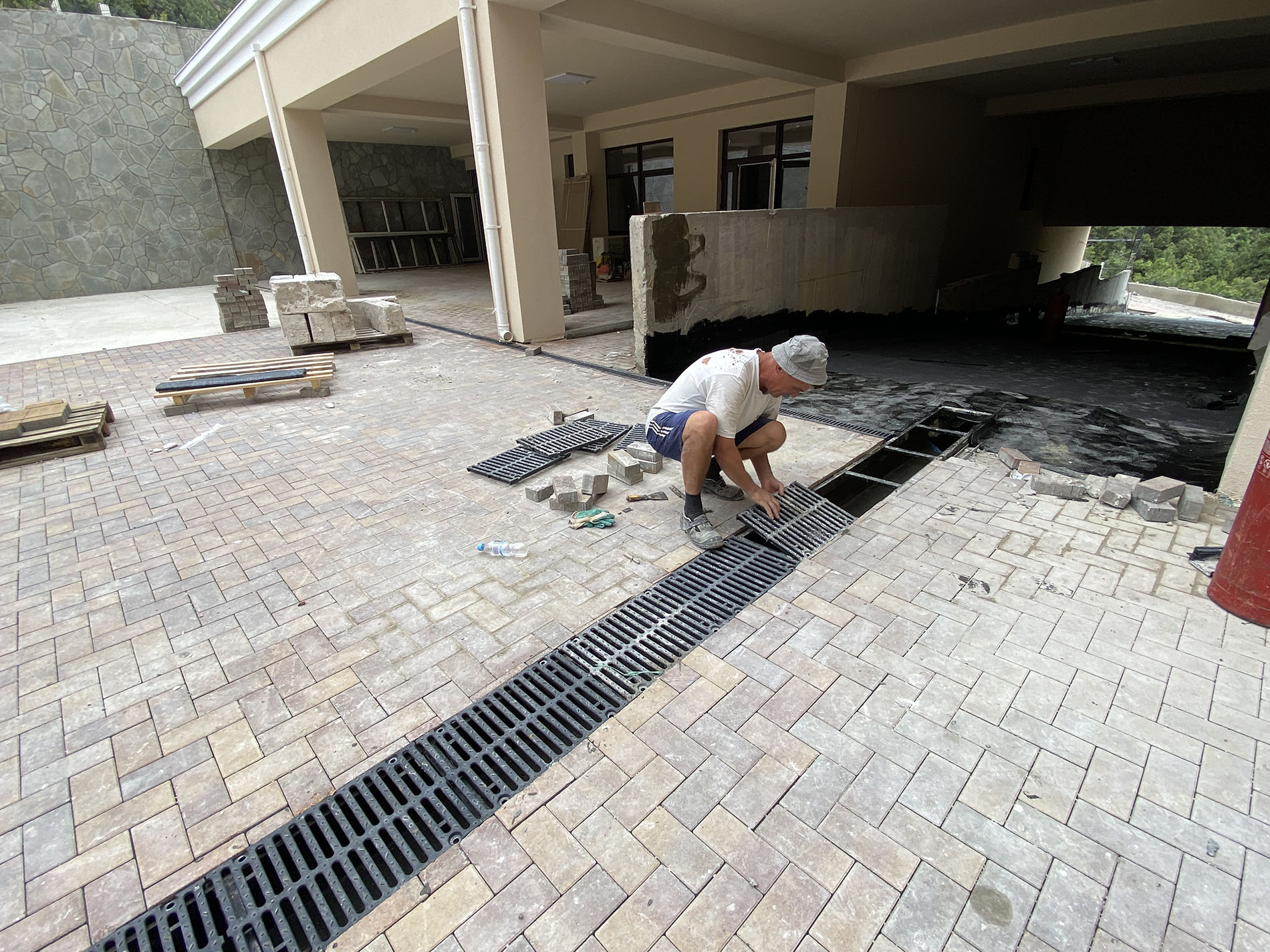 - монтаж водоотводных лотков по террасе на 1 этаже;