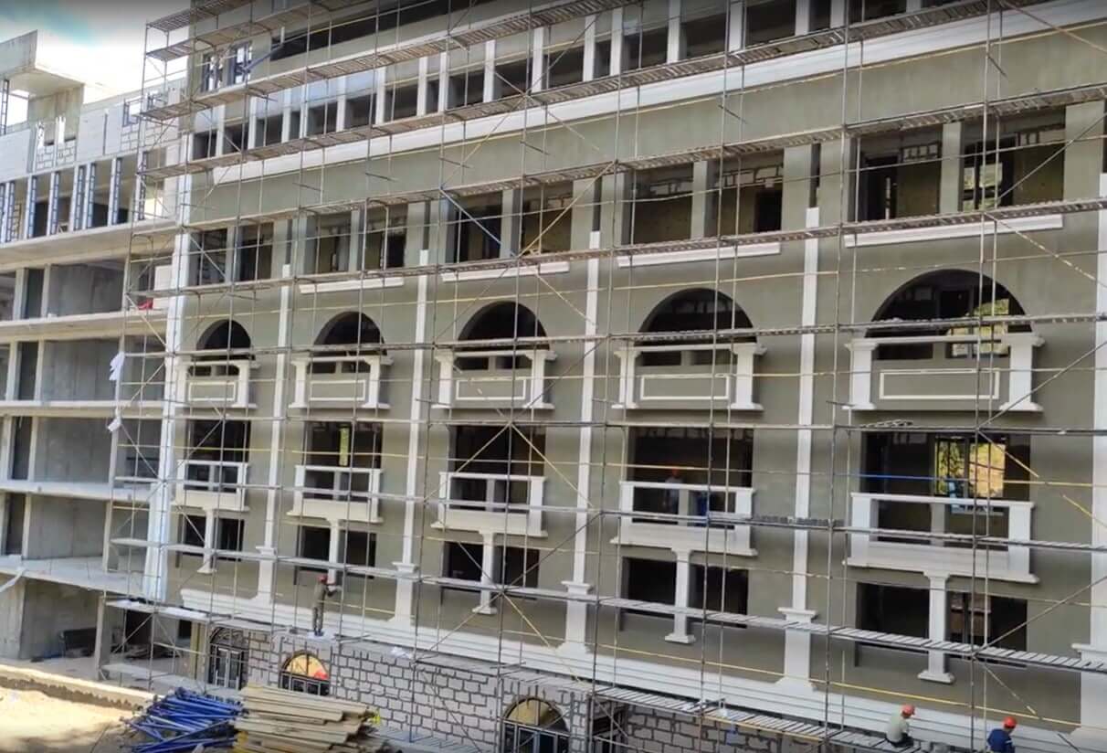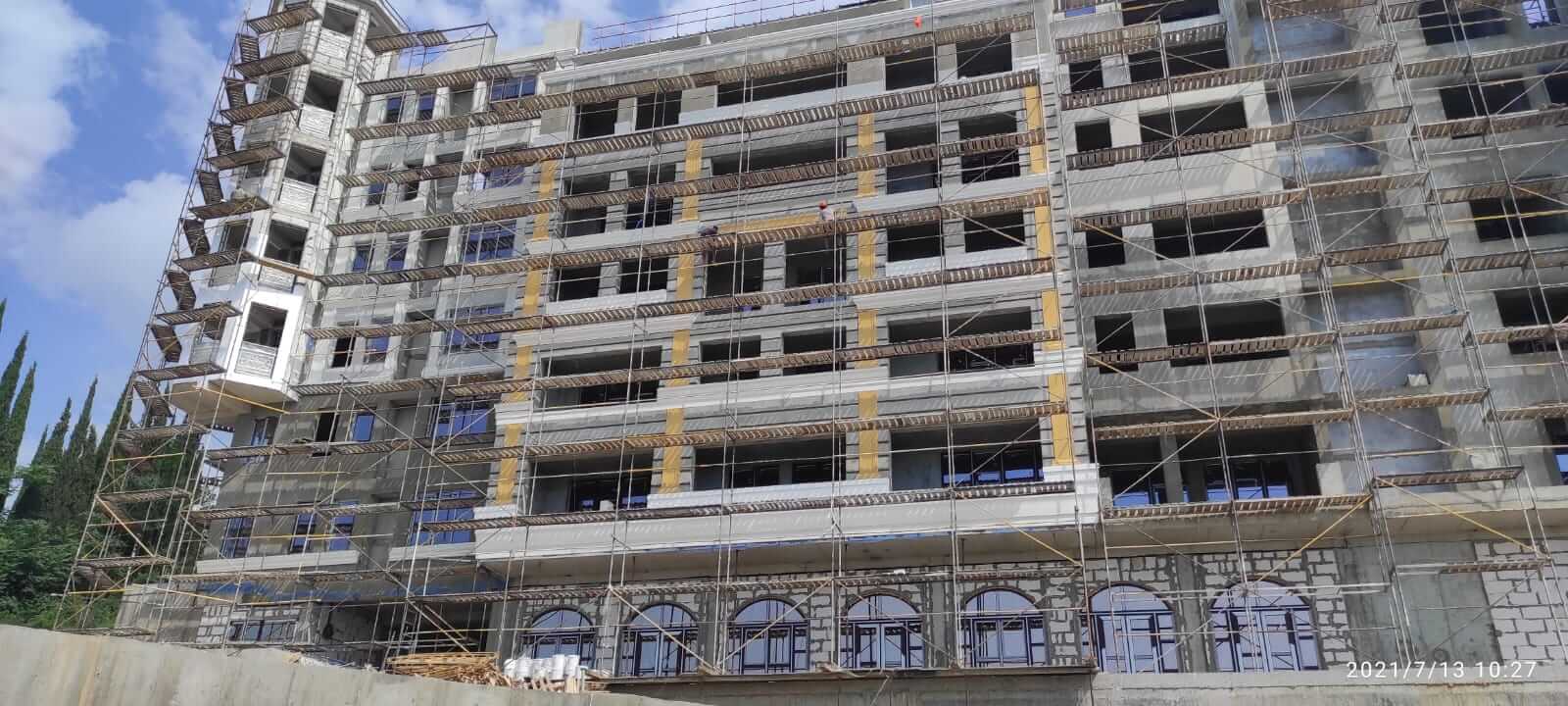 закончены монолитные работы по стенам, колоннам, перекрытию 5 этажа, возводятся стены и колонны 6 этажа;
